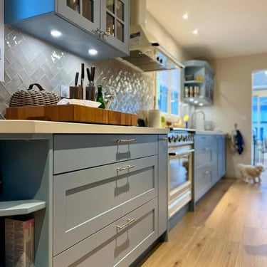 Pour l'agencement de cette cuisine située à Cabourg, les clients souhaitaient repenser entièrement leur cuisine afin de gagner en fonctionnalité, en rangement et en confort d’utilisation tout en gardant le même style.