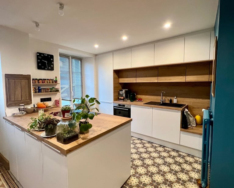 Conception et réalisation d’une cuisine fonctionnelle et esthétique adaptée aux volumes et à la lumière naturelle. Projet réalisé avec des matériaux premium et coordination artisan complète.